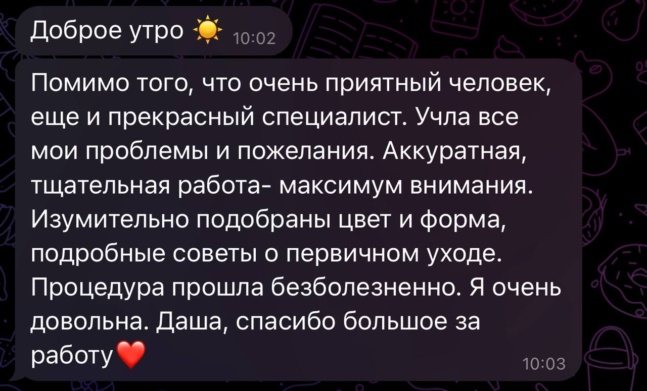 Получила дополнительное образование в школе Аллы Рамазановой, имею международный диплом мастера перманентного макияжа и несколько сертификатов.